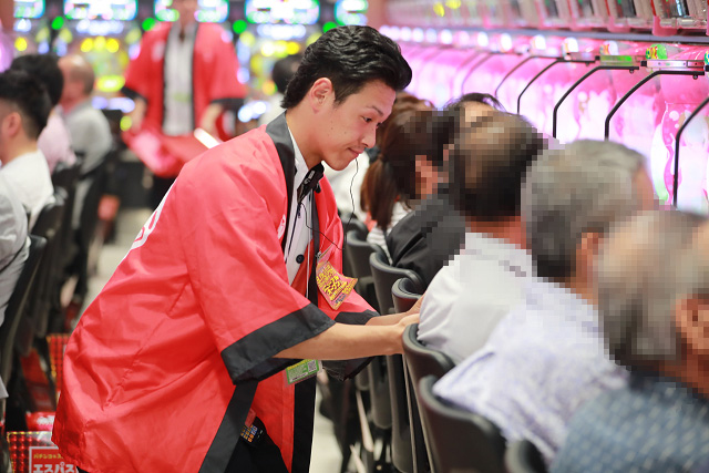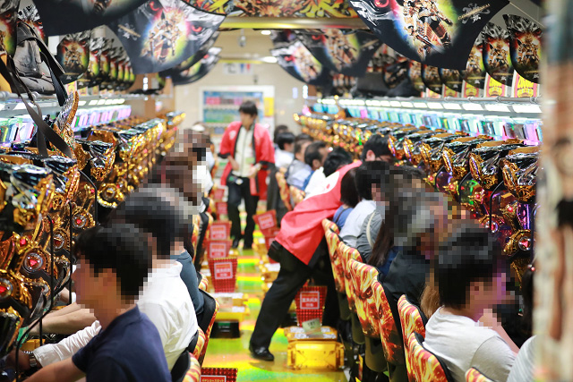 嬉々として店内に入るファンが真っ先に目指すのは、1Fの『海物語』シリーズ。そして、B1Fに広がる『CR牙狼GOLDSTORM翔』や『ぱちんこCR北斗の拳7 転生』、『ぱちんこCR真・北斗無双』へと群がる。