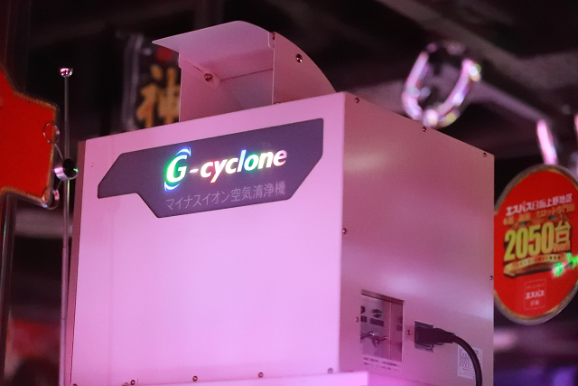 日拓グループの他の店舗でもそうだが、上野本館でも島上には空気清浄機が設置されている。そして台間には分煙ボードがパチンコのみならず、パチスロコーナーにも標準装備。