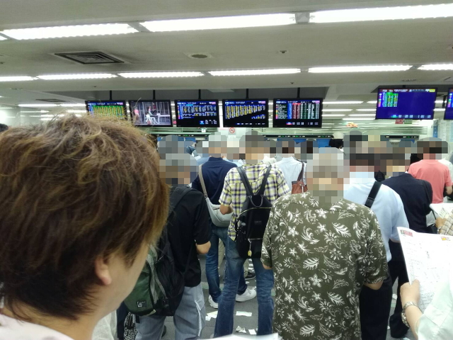 駅向こうの橋を渡り、階下に降りた先に広がっていたのは怒号飛び交う戦場、地方競馬の場外馬券売り場でした。