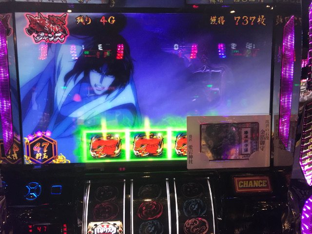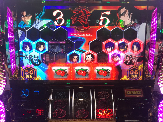 入店と同時にドゲさんと(計画的に)別れた僕はガチで狙っていた『バジリスク~甲賀忍法帖~絆』が取れず、『II』で勝負することに。ドゲさんは……まぁ、おそらく導入して間もない“アレ”に一直線で向かったことでしょう。愛の力って凄いですね。