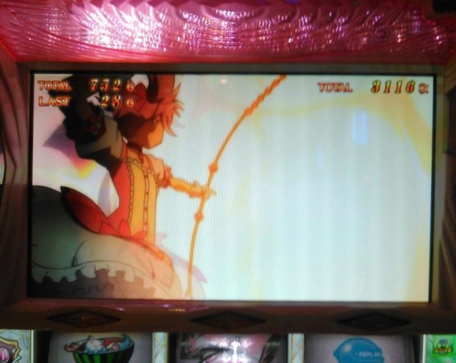 300Gから打ち始めて通常ラッシュを挟みつつ、さらっと800Gまで連れて行かれたものの、そこからBIG、高確いっぱい、マギカラッシュ当選、ワルプルギスの夜(赤)、18連チャン、わっしょいという流れで3,116枚いただきました。ええ、また取りきれませんでした。