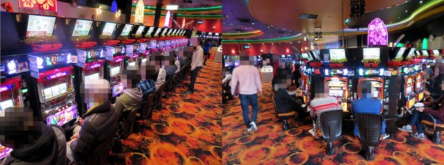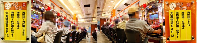 大通路左側が1パチ、右側が4パチと、わかりやすく住み分けされているのだ。