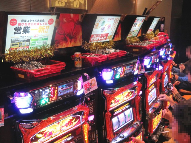 真っ先にファンが陣取ったのは、ハナハナシリーズ6タイプ計105台と、