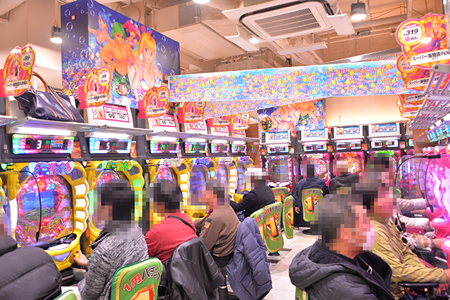 当然、パチスロフロアで盛り上がっていたのはバジリスク絆だけではない。右を見ても左を見ても、リニューアルの名に恥じぬ光景があちらこちらに。