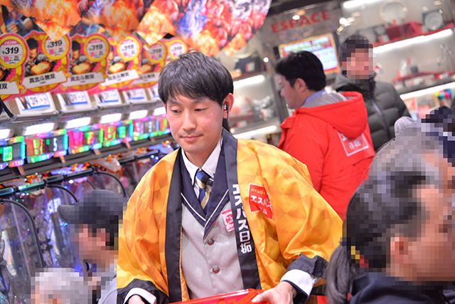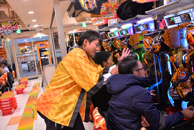 案の定、パチスロフロアのスタッフたちもファンの動向を気にかけ、常に忙しそうに動き回っていた。