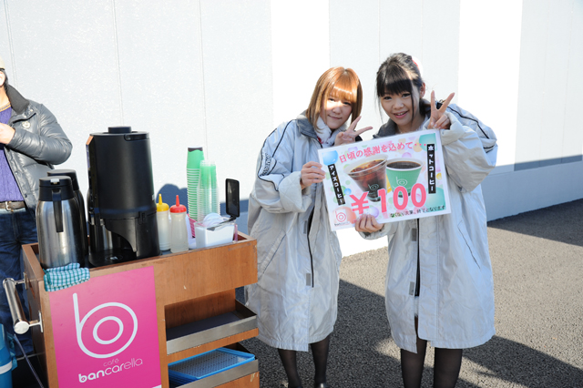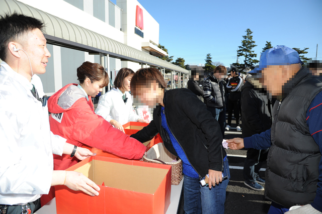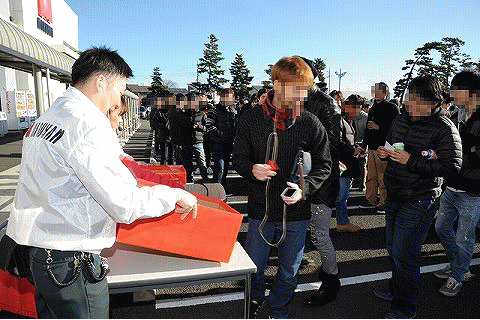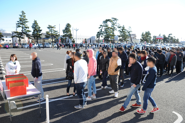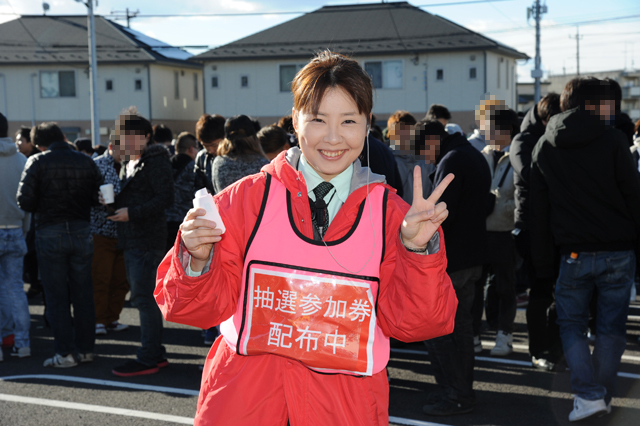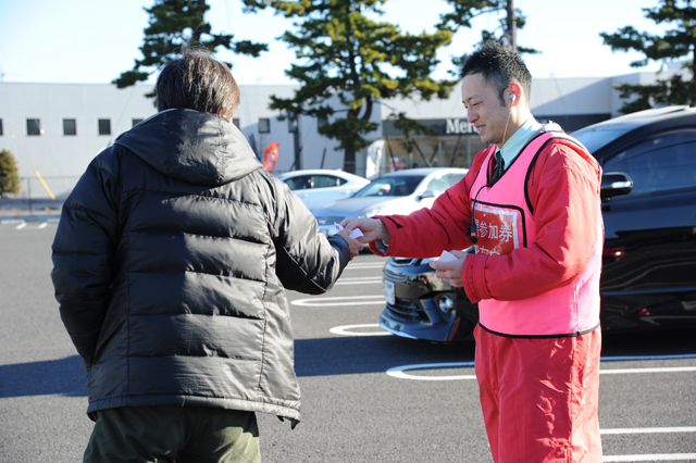 こうしている間にもどんどん駐車場にファンが入ってきて、スタッフは抽選券を配布。