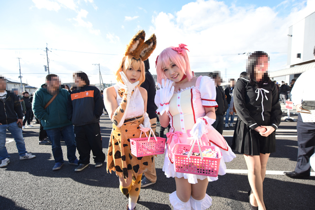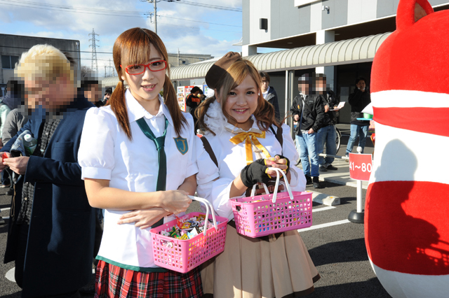 コスプレした美女たちによるアメの配布、