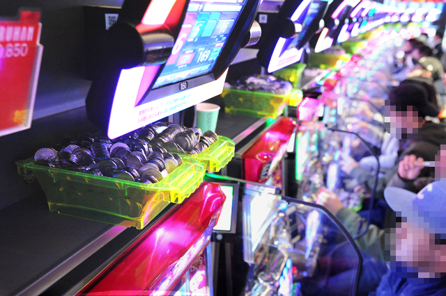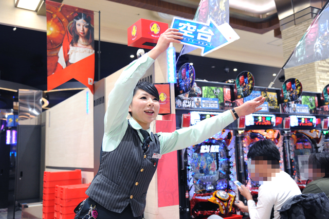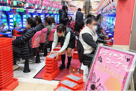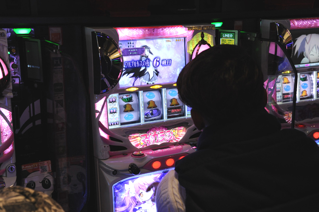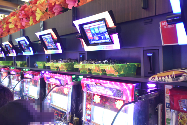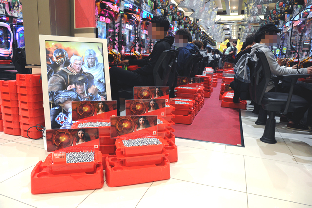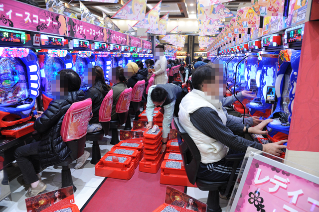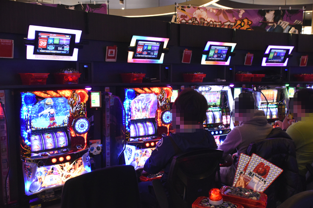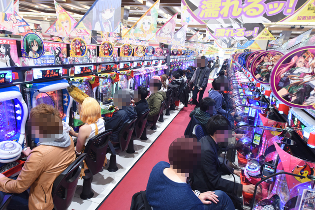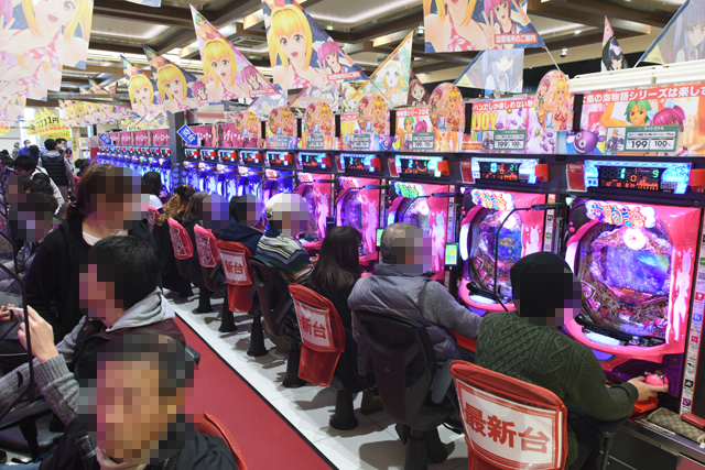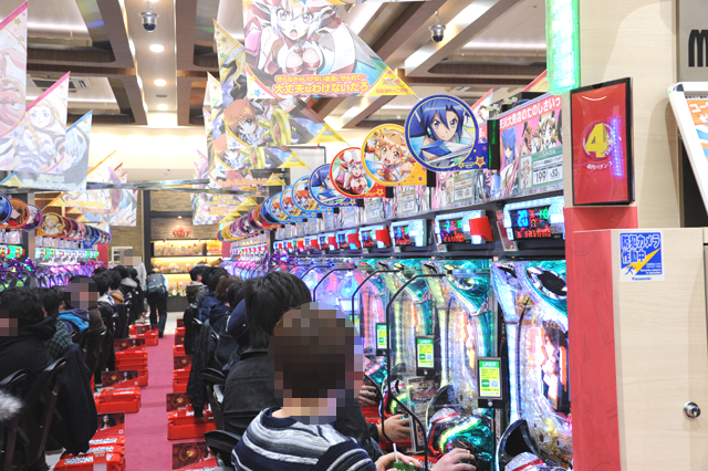 パチンコフロアには、アニメタイアップ機種ばかりを集めた全40台のアニメパチンココーナーもあるのだが、当然空き台など見当たらず。