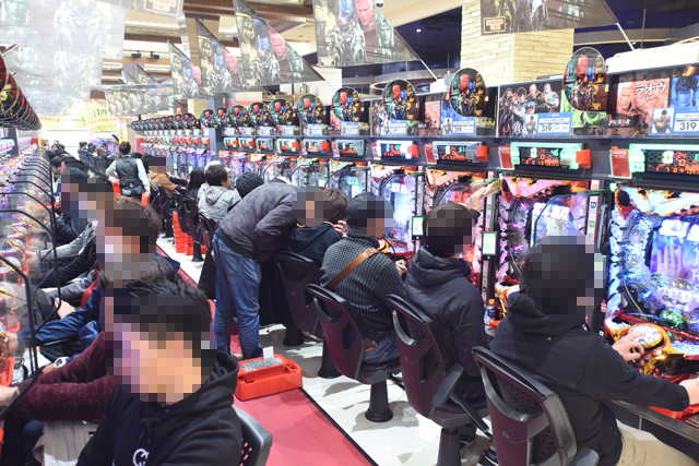 パチンコフロアも『ぱちんこCR真・北斗無双』『海物語』シリーズを筆頭に、時間の経過とともに満台に。