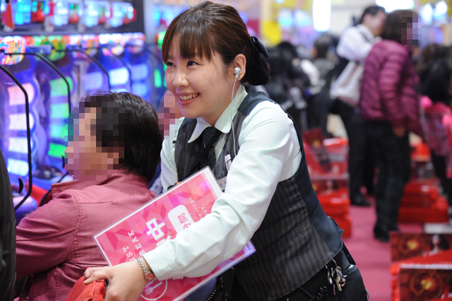 総台数969台を擁する同店ではあるが、開店と同時にパチンコもパチスロもどんどん埋まっていく。その様は、さながらお気に入りのオモチャを与えられた子供のように、皆キラッキラの笑顔!