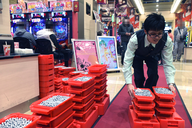 こんなアツイ状況であるからして、スタッフも大忙し。次から次へとシマ外へ運び出される持ち玉は無尽蔵!?
