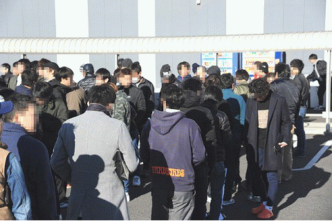 この日の並び人数は抽選で620人。抽選券を貰っていない一般入場のファンを含めれば800人、いやそれ以上だ。なるほど凄まじい並びである。