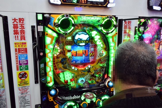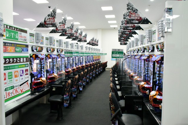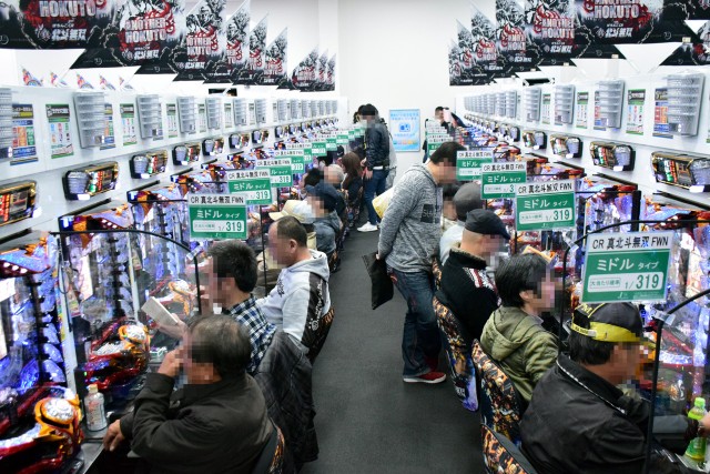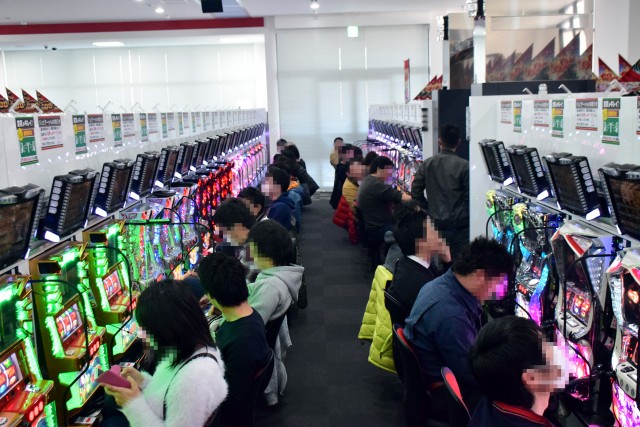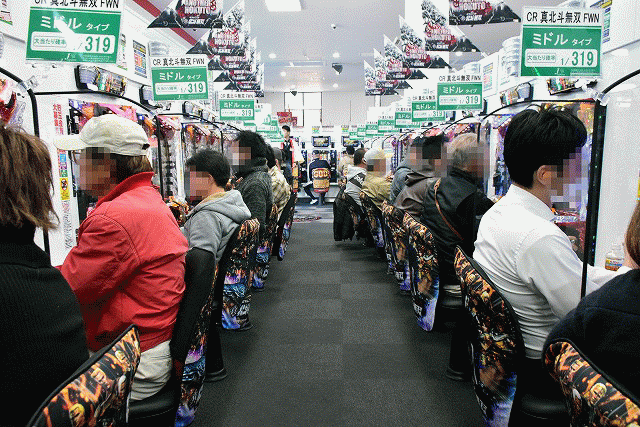 その人気はやはり本物。さらに新台の『CR真・花の慶次2』や『CR大海物語4』をはじめとした『海物語シリーズ』もすでにパンパンとなっていた。
