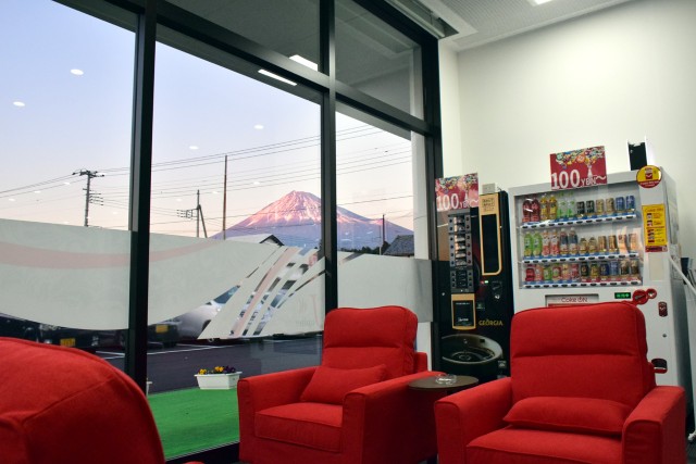 普段、コンクリートジャングル・東京で働く我々にとって、パチンコホールの休憩コーナーで富士山を眺めることができるなんて贅沢の極み!!私もここで休憩したいっ!!(自販機の飲み物が100円~というのも嬉しいポイント)