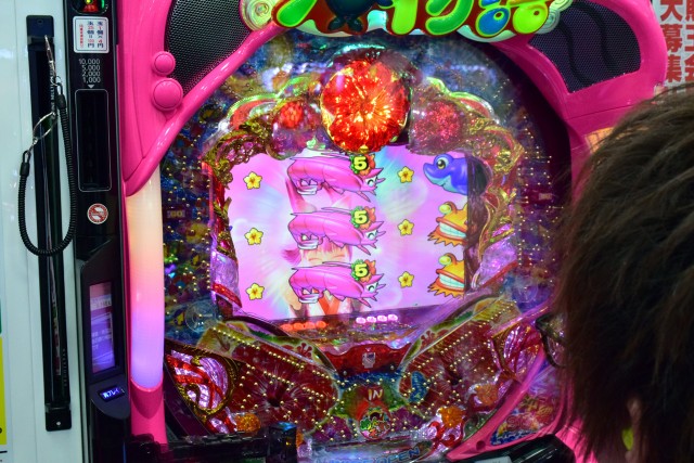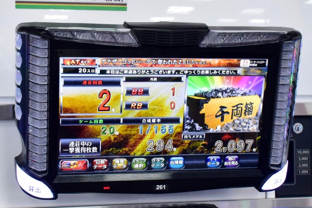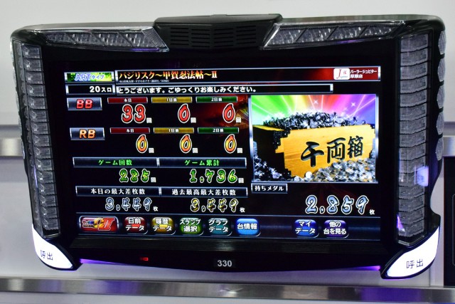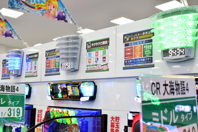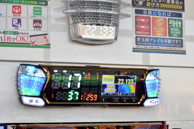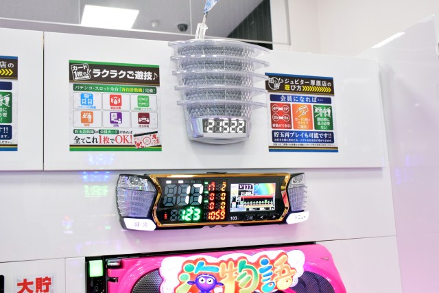 全台に各台計数機を導入しているため、パッと見では出玉感は伝わってこないが、データランプをじっくり見ていくと、パチンコフロアのいたるところで驚異的なカウントが続出。オープンから3時間ちょっとでこの結果はなかなかのもの。これがもし玉積みのホールだったら、キラキラと輝く美しい玉箱の『富士山』がそこらじゅうにそびえたっていることだろう。
