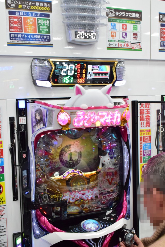 パチスロフロアを見てみると、『アナザーゴッドハーデス-奪われたZEUSver.-』と『ミリオンゴッド-神々の凱旋-』、『押忍!番長3』、『SLOT魔法少女まどか☆マギカ』、『バジリスク~甲賀忍法帖~II』といったAT・ARTバラエティ、『SLOT魔法少女まどか☆マギカA』、『ハナビ マットブラックver.』、『バーサス』などを揃えたノーマルタイプバラエティが大盛況。これら以外にもパチスロフロアにはセンスの良さを感じさせるラインアップがたくさん揃っているぞ。