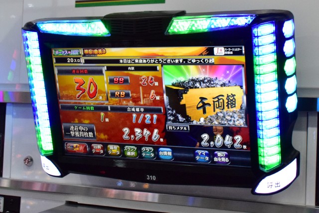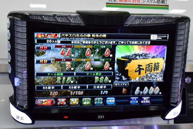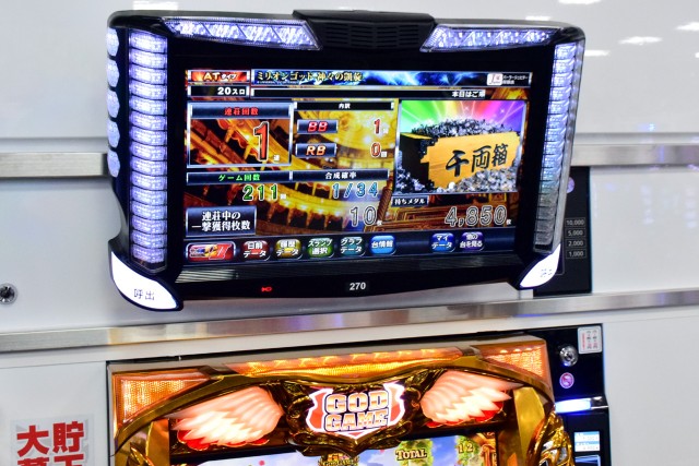 パチスロフロアのデータランプを見てみると千両箱だらけ。『パチスロ北斗の拳 転生の章』ではすでに二桁を超える死闘を繰り広げている猛者も出現。『ミリオンゴッド-神々の凱旋-』でもネ申のキセキと思わせるほどの記録を叩きだしているファンの姿も見られた。