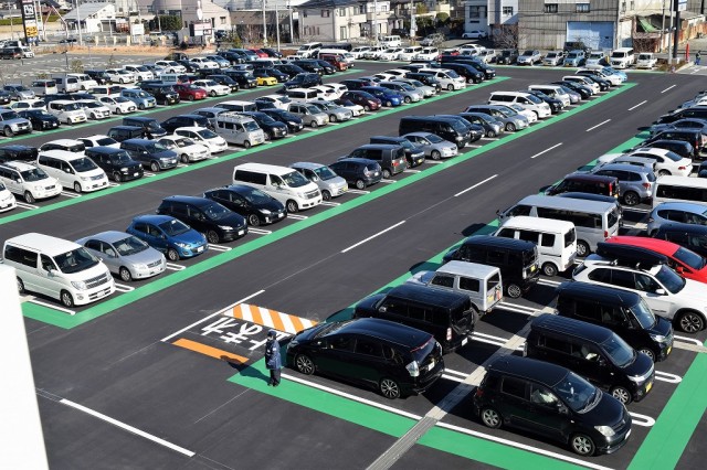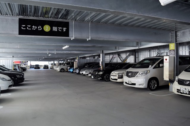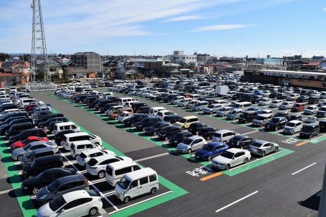 1326台を収容できる大型駐車場は、立体駐車場に至るまでズラッと満車!