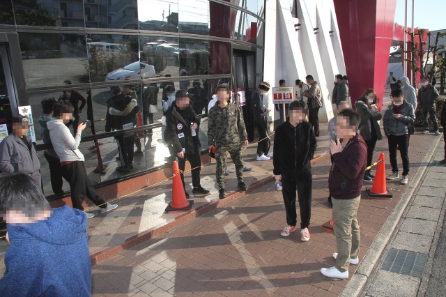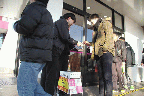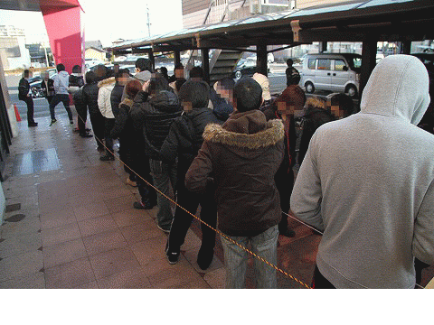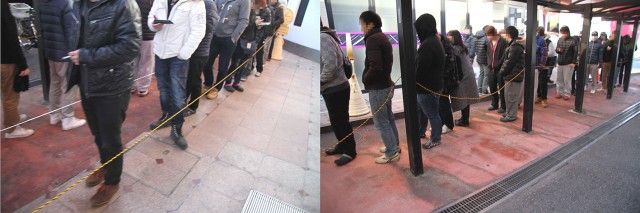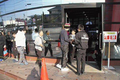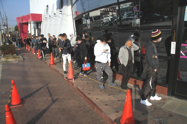 前回・前々回と同様、雲一つない空が広がるこの日も、店舗前には早朝から100人を超えるファンが集結!!