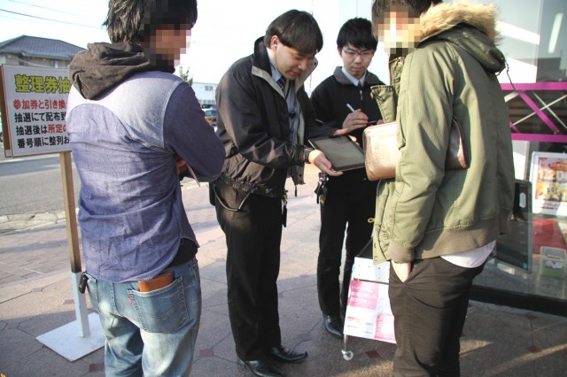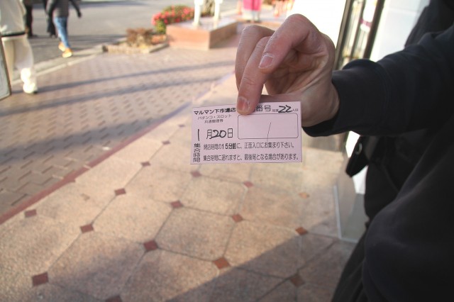 8時15分、マルマンおなじみiPadによる抽選と、心を込めた手書きの入場整理券配布を開始。