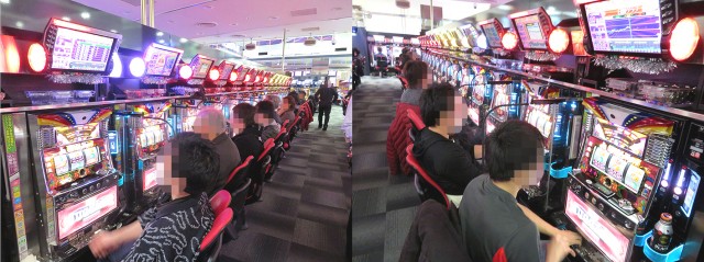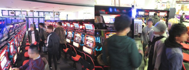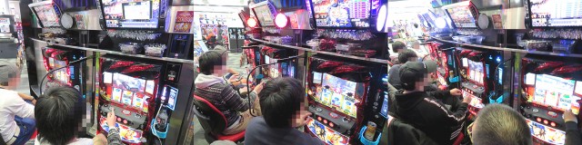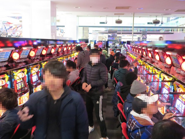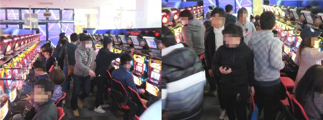 立ち上がりの早いゴッド系や朝イチから満員御礼だった沖スロ系。