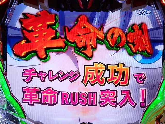 では、具体的にどこで確変か時短かを見分けるのか。それは「即連モード」を抜けて「革命RUSH」に移行した瞬間に明らかになります。