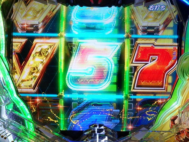 レベル表示はないので、単純に出目が重要に。2個並びでは心許ないですが、同色揃いなら青・赤問わずに大チャンス! 真ん中にV図柄停止は実戦上、すべてVコン演出に発展しておりハズレ未確認です。
