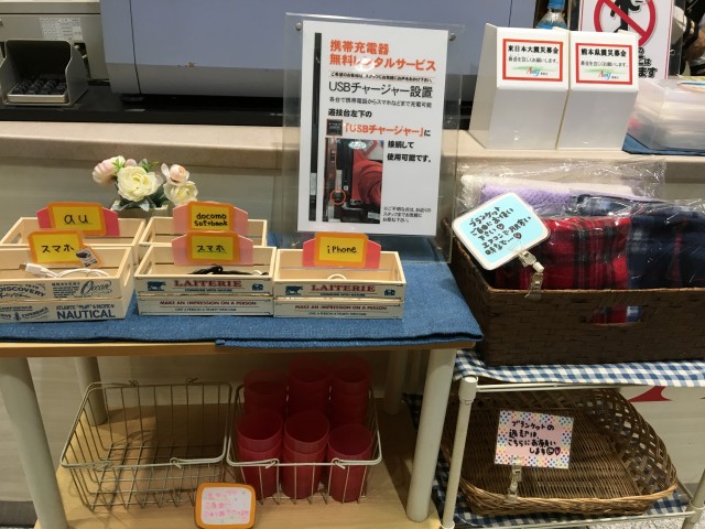 スマホの充電ケーブルやブランケットの貸し出しなど、サービスにも抜かりなし!
