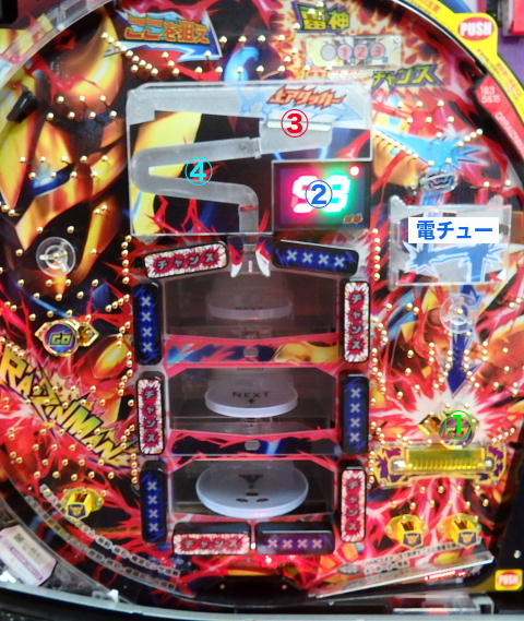 ② ②で奇数図柄が2つ揃うと③のアタッカーが解放