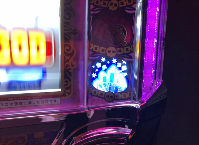 液晶非搭載ながら、お馴染みのクリスタル氷演出やハーデスの槍演出を筐体右側のランプで見事に再現。