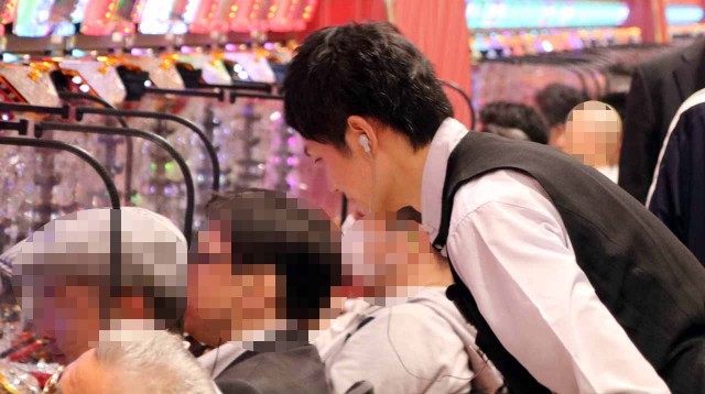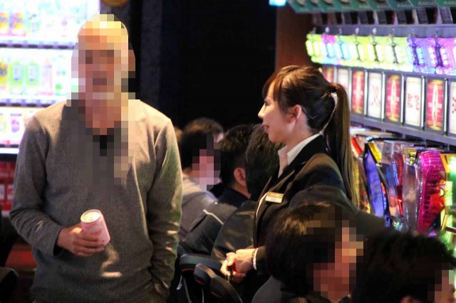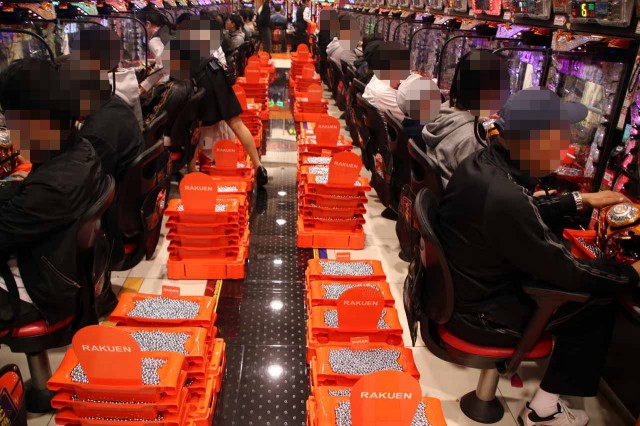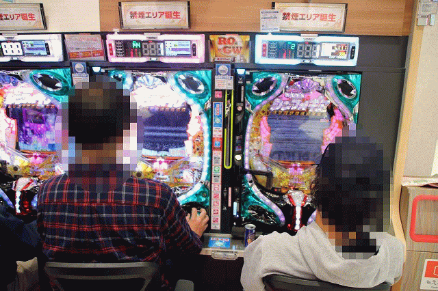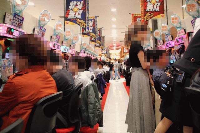 既存フロア2階のパチスロコーナー。圧倒的な稼働状況もさることながら、それに伴い、景気よろしいですなぁ~な光景もチラホラと。ファンも自然と姿勢が前のめりに!