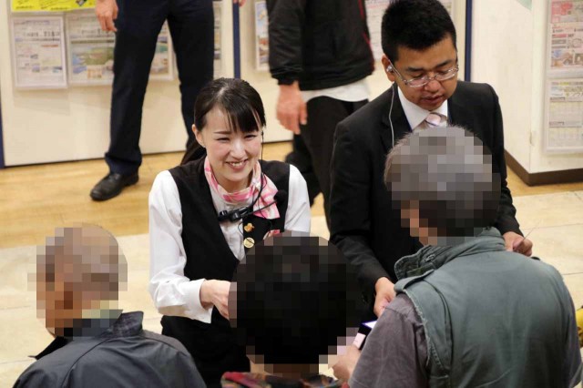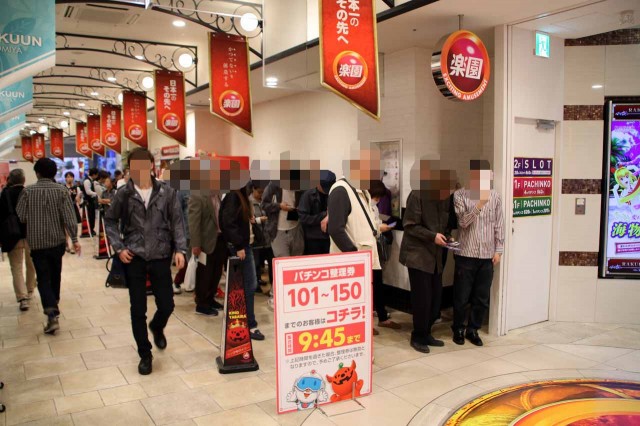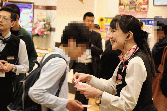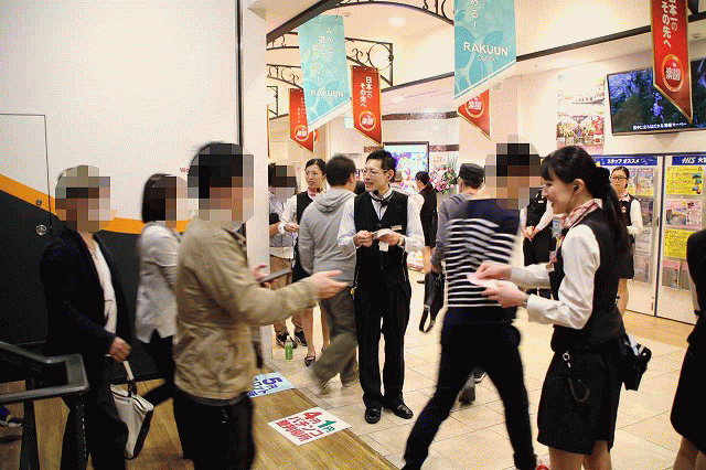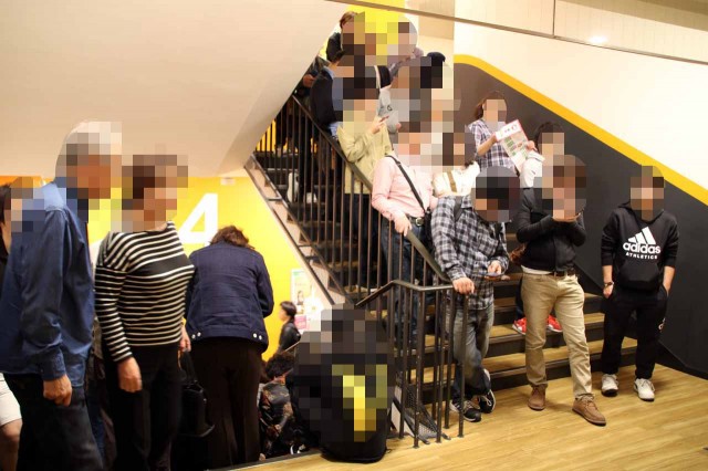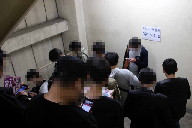 整理券の配布が近づいてきた!それを入手すべく、お店の入場口付近には、ワクワク感を胸に秘めたファンがズラリと集結!整理券配布の時間が近づくにつれ、人の数もどんどん増えるばかり!お店の前だけでは集まった人の整列は不可能だ!店舗ビルの上へ上へと、ファンの塊が拡がっていく!