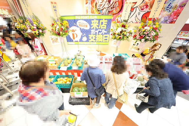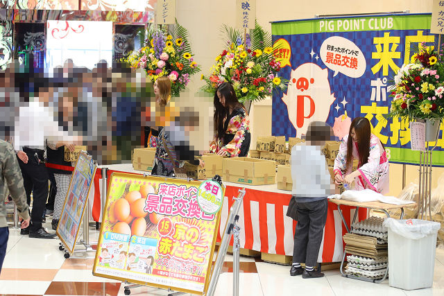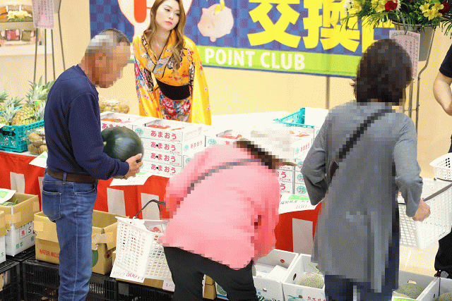 そして、この日は14時からポイント交換会で鶏卵「京の赤たまご」の詰め放題、15時からフルーツの販売会が行われた。