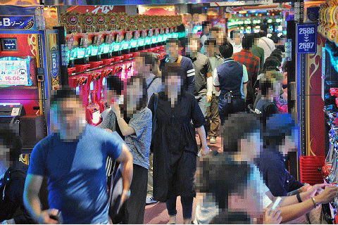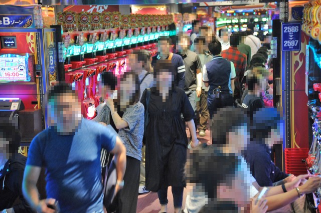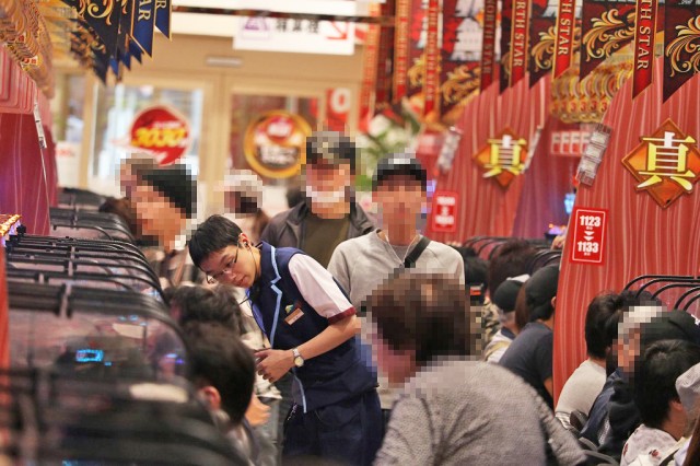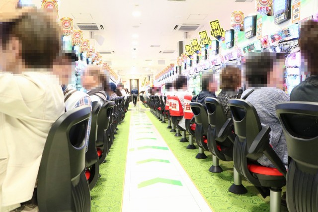 既に遊技に夢中のファンを羨望の目で見つめつつ、後続のファンは空台パトロールに必死!