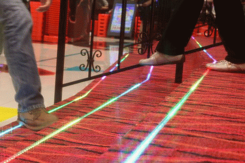 | 2F:全て20スロとなるフロア。出来たてピッカピカの禁煙エリアの一方、RAKUUN側となる喫煙フロア側には「楽園沖スロシリーズ」や「バジリスク絆ZONE」など特徴となるコーナーが多数構えられている。また、新システム「Wシステム」(後述)を導入している。 | |