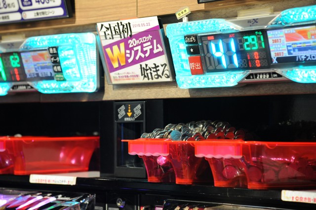 | 使用状況は各台計数機が多め?…その分、通路も通りやすく、絶好調なファンが一目瞭然!余談だが、筆者的にはドヤりたいのでドル箱派であるw |