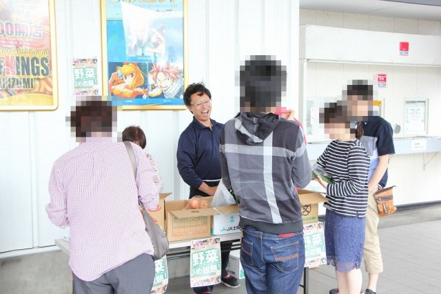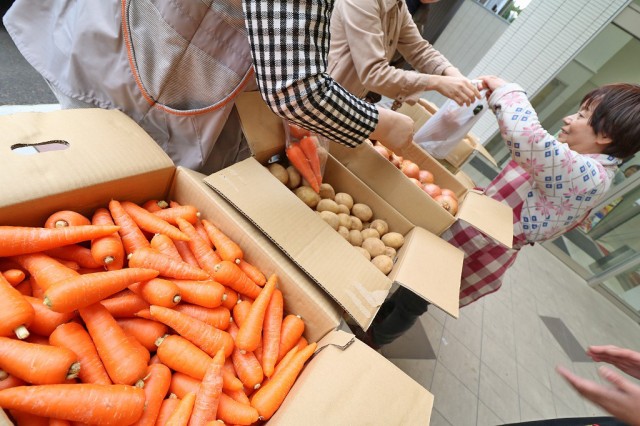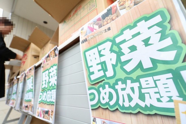 | その各店の一角を借り、我々DMMぱちタウンが「チャリティー野菜詰め放題」を実施! |