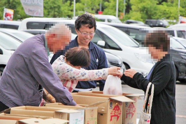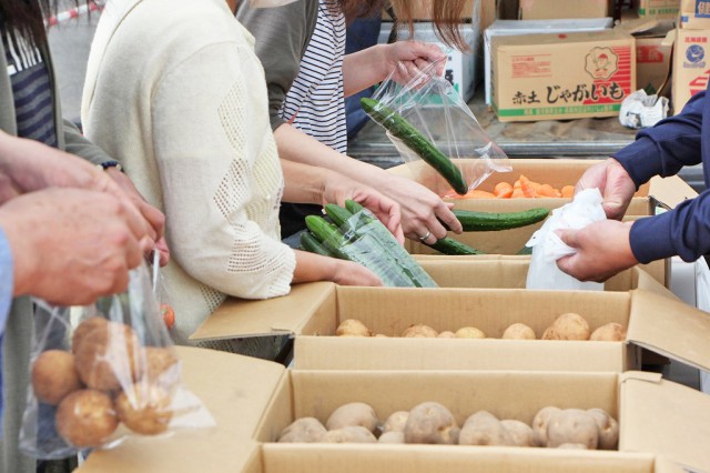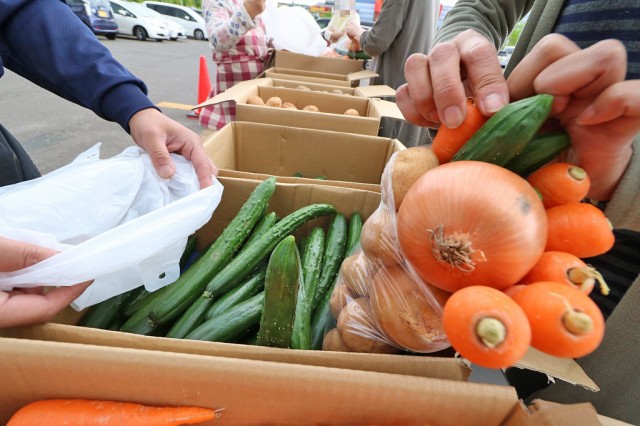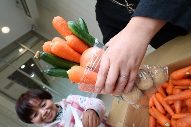 今回、各店の駐車場の一角をお借りして実施した「野菜の詰め放題」!