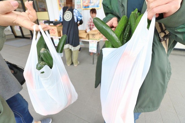 野菜は、にんじん・玉ねぎ・じゃがいも・きゅうりの4種類。つめ放題もワンコインだけあって、主婦層には大人気!