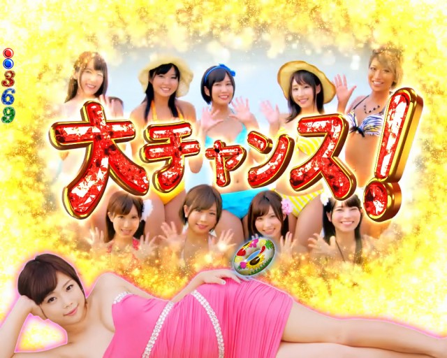 図柄も演出中もほぼ全編を通して全員水着!前作は確か真冬の12月導入でしたが、今作は真夏なので肌色成分多めでも安心ですね。