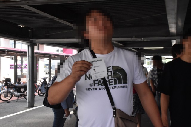 今回抽選番号1番を獲得したのは、5人グループで来ていたお兄さん。