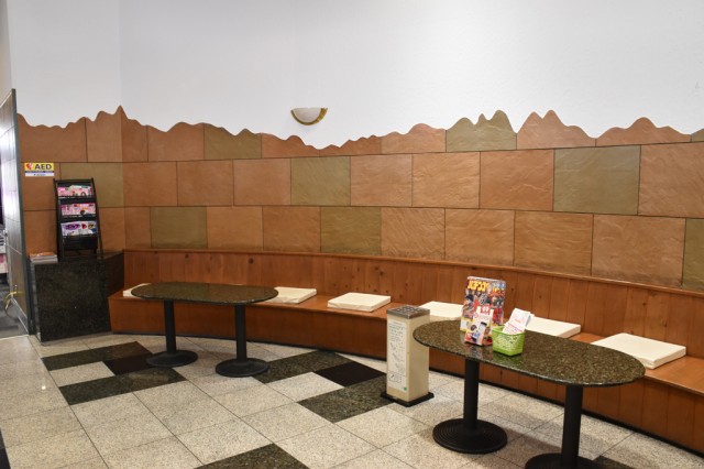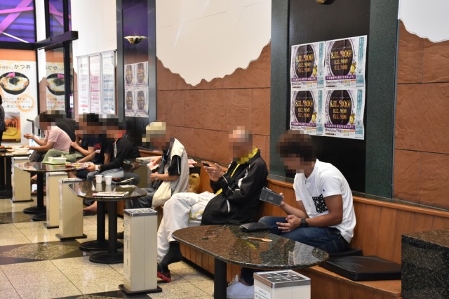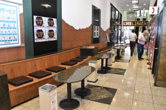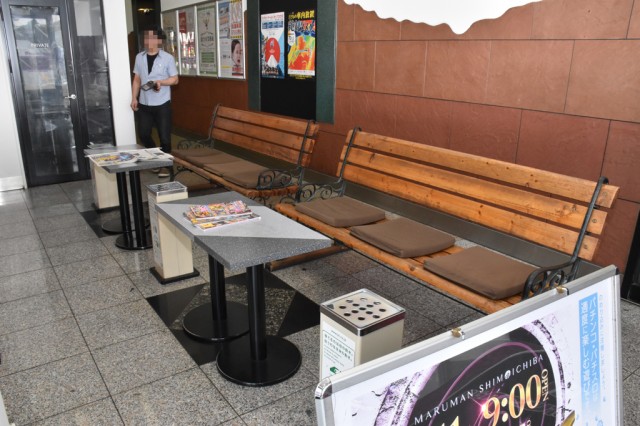 同店は先述のとおり、マルマングループの旗艦店ということもあり、店内は広く遊技台数も多い。そのため、ファンが長距離を移動しなくても休憩ができるように、店内各所に休憩スペースが設けられている。