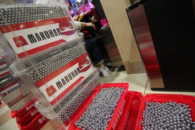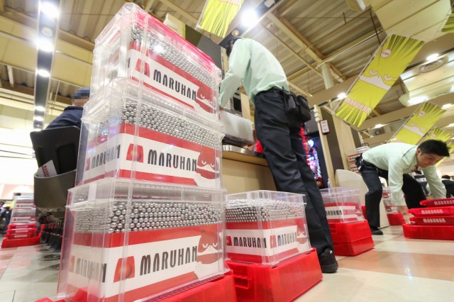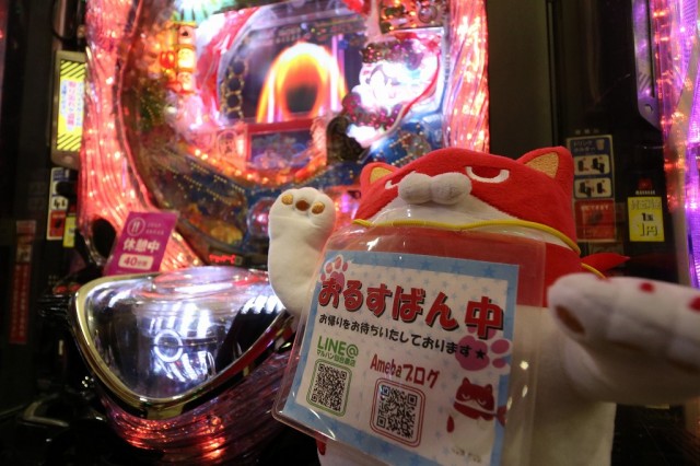 | 「にゃんまる」はマルハンの公式マスコットである。注:原色は真っ赤。 |