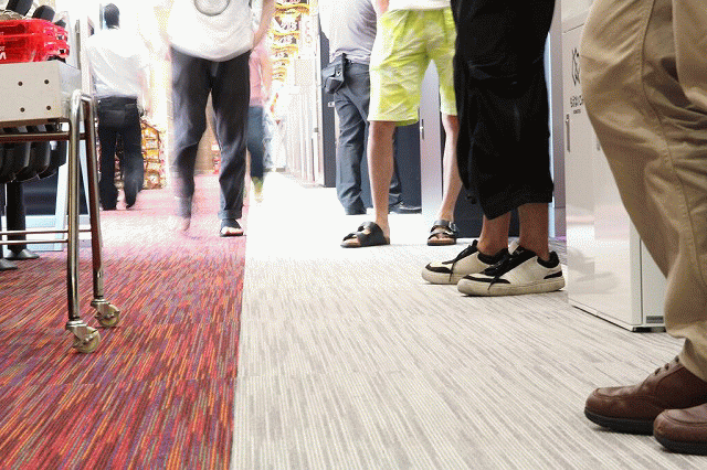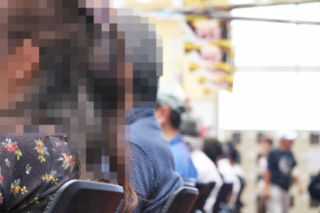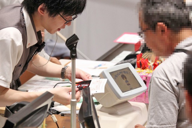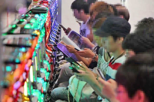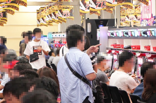 | 待機中のファンは、仲間内で話していたり、調べものをチェックしていたりと、遊技開始までの時間を過ごしていた。 | |