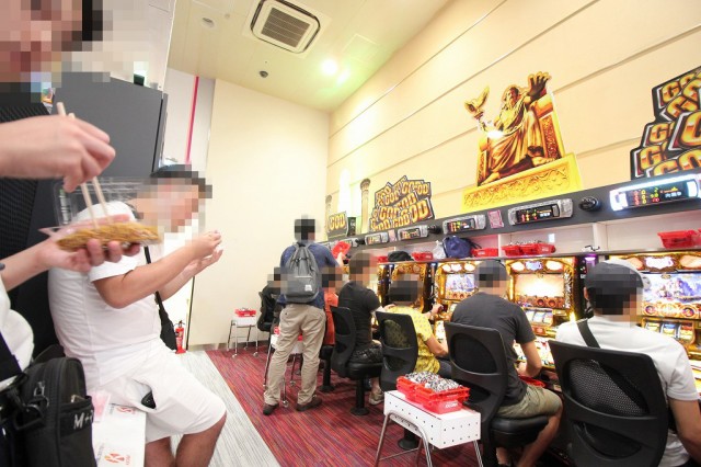 遊技開始1時間前…。ホール内はすでに満員御礼。ムワッとむせる様な外気とは、“別種の熱気”がホール内に充満していた。