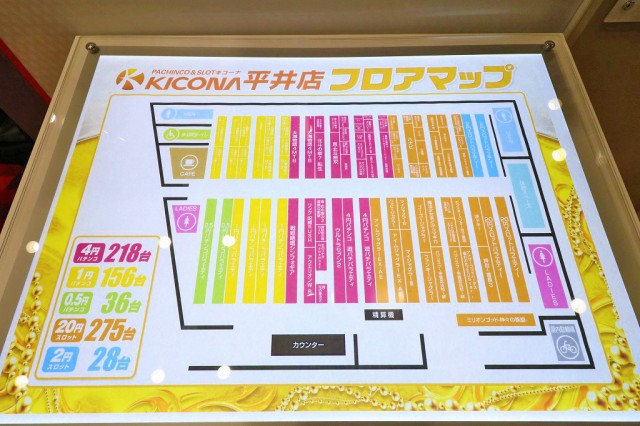 《キコーナ平井店》に設置されているパチンコ・パチスロ713台!