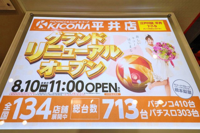 そこは兼ねてより、地元に愛されてきたオアシスーー。そんなホールがこの日、その名と装いも新たに、《キコーナ平井店》としてグランドリニューアルオープンを果たした!