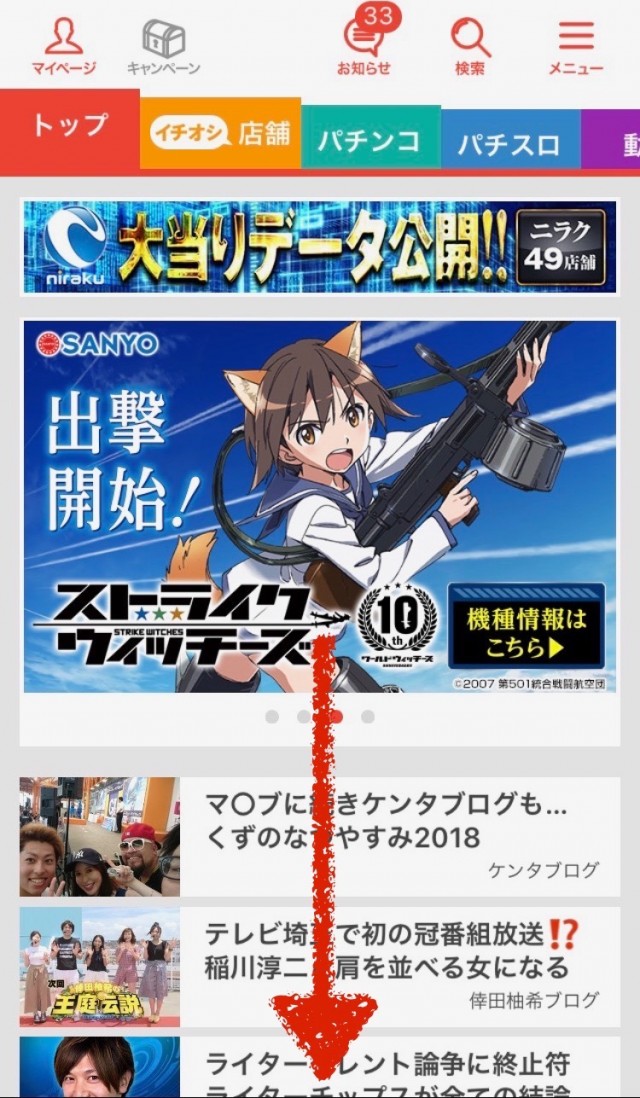 ぱちタウンアプリを開いたら、下の方へ。