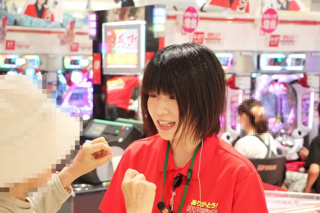 ホールで、カウンターで…、と所構わず、快適な遊技空間を楽しんでもらうため。日々の感謝を込めて、全力全開のサポートっ!!!