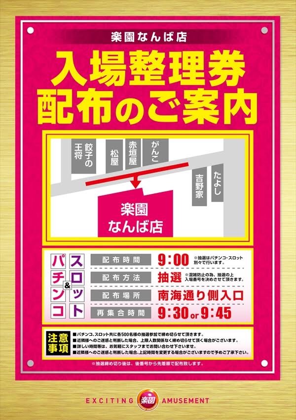 9時にホールに着いても抽選券が無くなっている場合がありますのでご注意ください!